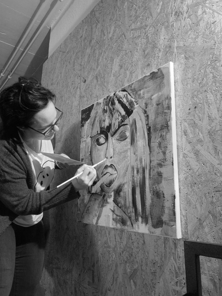 Ich arbeite beim Töpfern mit Handaufbau, beim Malen bin ich in allen möglichen Disziplinen unterwegs – ob die Wahl auf Öl, Acryl oder doch Kohle und Kreide etc. fällt, ist bei mir oft eine Frage der „Lust worauf?“.